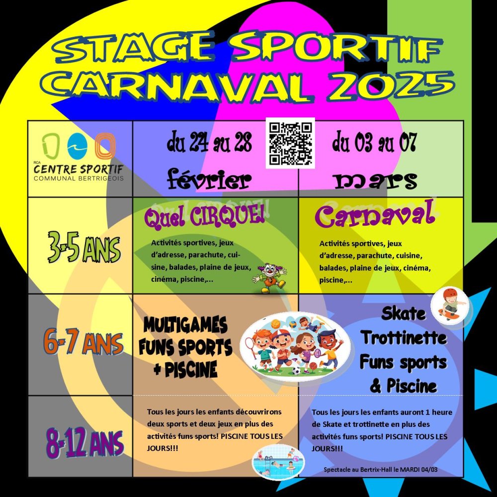 2025-02-24 08:00:00 2025-03-07 17:00:00 Europe/Brussels Stages Carnaval 2025 Reservations on : https://www.billetweb.fr/stages-carnaval-2025 -- Bertrix, Belgique RCA centre sportif communal bertrigeois