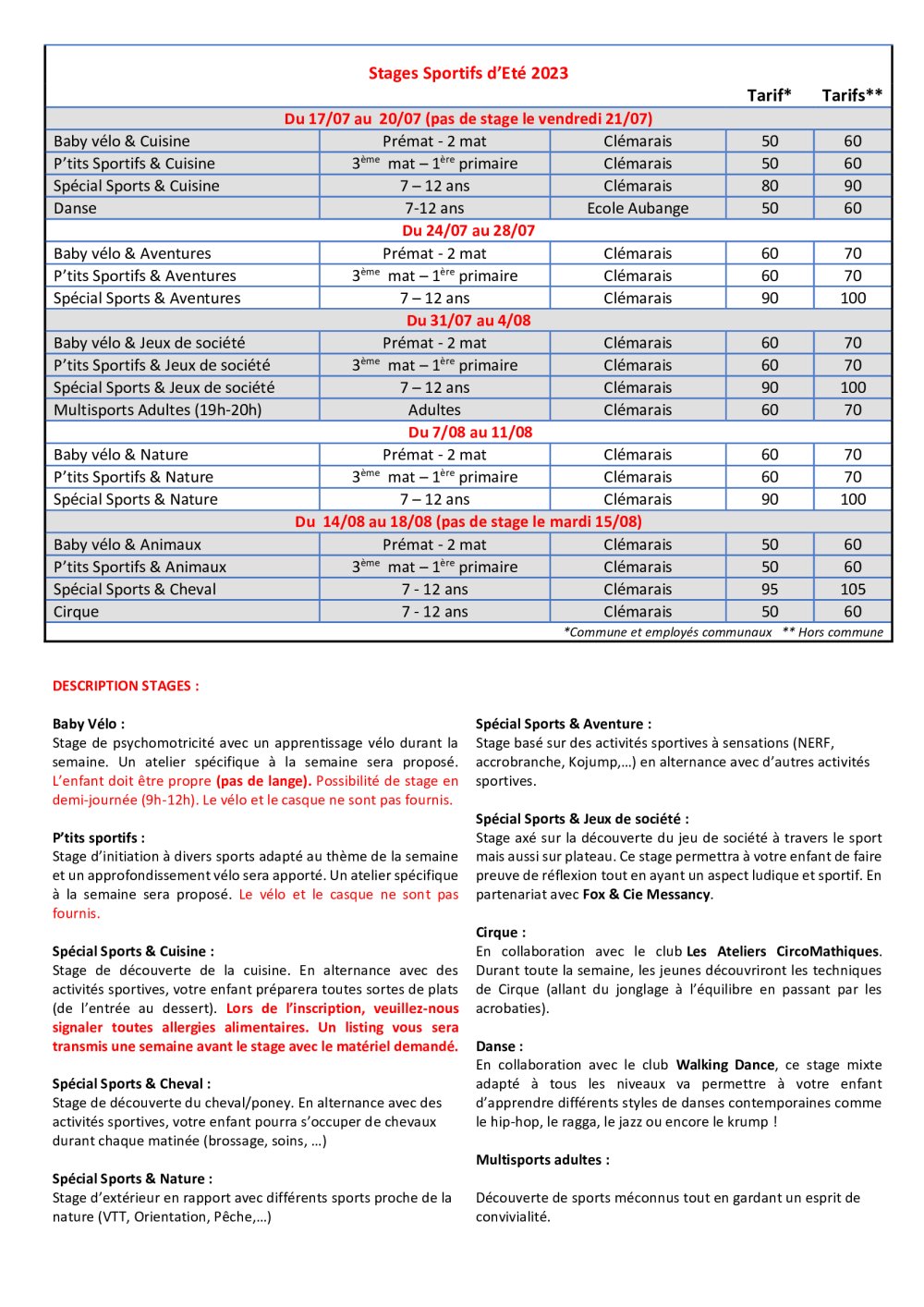 Stages Sportifs RCA