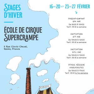 Lieu : École de cirque de loisir Supercrampe. 2 rue Clovis Chézel, 51100 Reims.