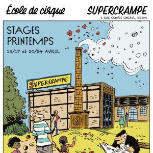 Lieu : École de cirque de loisir Supercrampe. 2 rue Clovis Chézel, 51100 Reims.