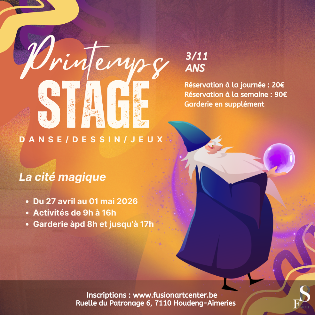 Inscription à la semaine ou à la journée. Réduction de 5€ sur la semaine pour les membres fusion'art center (code promo FUSION)