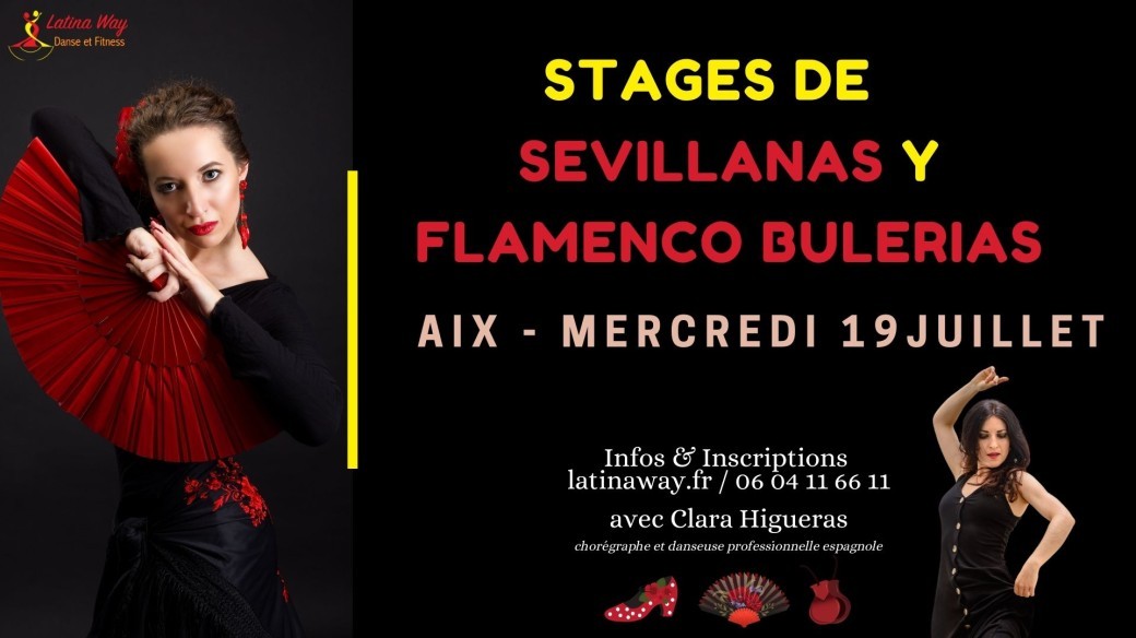2023-07-19 19:00:00 2023-07-19 21:00:00 Europe/Paris Stages Sevillanas y Flamenco Bulerias Reservations on : https://www.billetweb.fr/stages-sevillanas-y-flamenco-bulerias -- Clara Higueras, danseuse espagnole professionnelle et professeur de Danse vous fait voyager dans une après-midi au caractère très fort !   Stage de découverte Sevillanas de 19h à 20h Niv : Débutants   Venez Découvrir cette danse typique espagnole à 2, en cercle ou en groupe qui traduit à la fois l'approche, l'affrontement, la fuite et l'amour   Stage de Flamenco Bulerias de 20h à 21h Niv Initiés au Flamenco   L'Académie Royale Espagnole la définit comme un style de cante (chant) flamenco de rythme vif s'accompagnant de palmas (claquements de mains).. La bulería est particulièrement festive et joyeuse et se prête bien au jaleo.   La Grande Bastide, Avenue du Square, Aix-en-Provence, France Latina Way