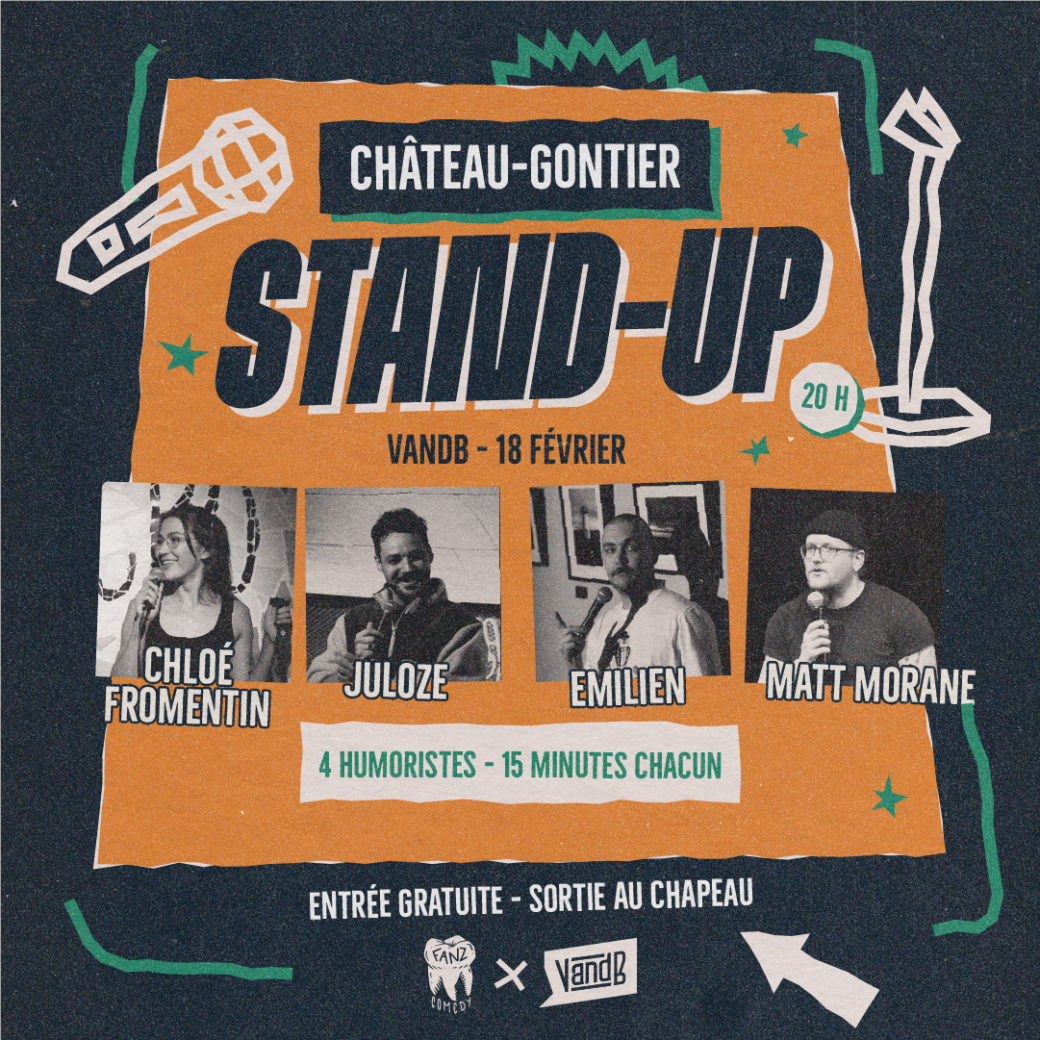 2026-02-18 20:00:002026-02-18 22:00:00Europe/ParisStand-up à Château GontierReservations on : https://www.billetweb.fr/stand-up-a-chateau-gontier