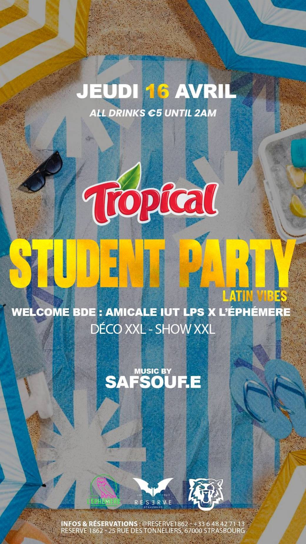 2026-04-16 23:30:002026-04-17 06:00:00Europe/ParisSTUDENT PARTY "TROPICAL" Reservations on : https://www.billetweb.fr/student-party-tropical