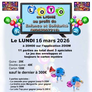 2026-03-16 20:00:00 2026-03-16 23:50:00 Europe/Paris Super loto Enfance et solidarite Réservation sur : https://www.billetweb.fr/super-loto-enfance-et-solidarite-16-mars -- - Association Enfance et solidarité