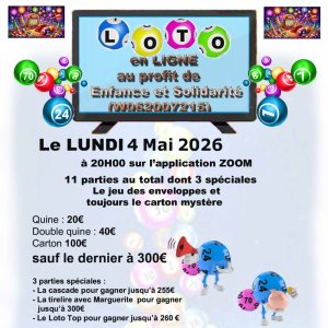 2026-05-04 20:00:00 2026-05-04 23:50:00 Europe/Paris Super loto Enfance et solidarite Reservations on : https://www.billetweb.fr/super-loto-enfance-et-solidarite-4-mai -- - Association Enfance et solidarité