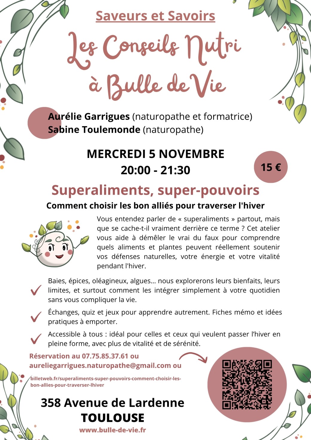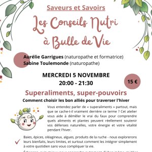 2025-11-05 20:00:002025-11-05 21:30:00Europe/ParisSuperaliments, super-pouvoirs : Comment choisir les bon alliés pour traverser l'hiverReservations on : https://www.billetweb.fr/superaliments-super-pouvoirs-comment-choisir-les-bon-allies-pour-traverser-lhiver