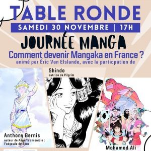 Dans le cadre de notre Journée Manga, nous vous proposer de nous interroger sur les parcours possibles pour devenir Mangaka en France. Cette table ronde, animée par Éric Van Elslande, invite trois auteur·ices français·es de manga, qui nous raconteront comment ils et elles ont réussit à s'imposer dans le milieu des mangakas français·es.