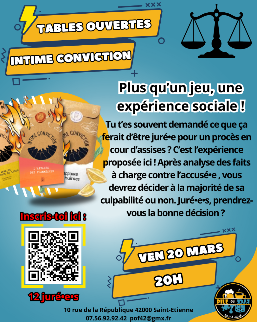 2026-03-20 20:00:002026-03-20 21:30:00Europe/ParisTables Ouvertes - Intime ConvictionReservations on : https://pileouface42.fr/