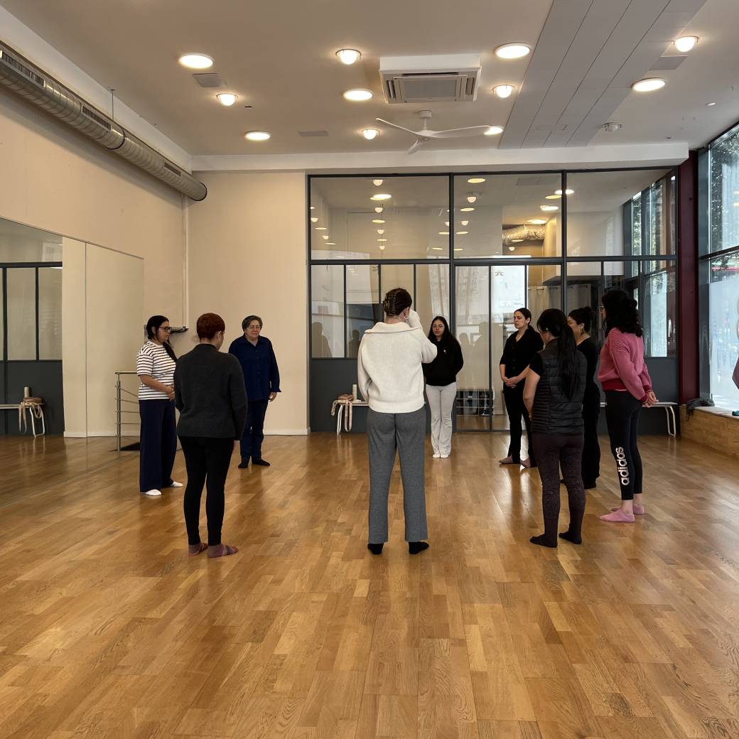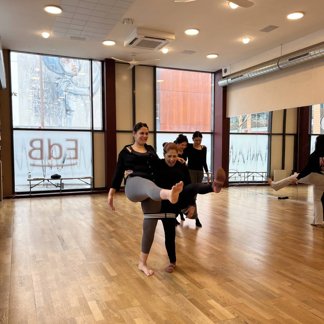 Es un espacio seguro donde tu cuerpo, tus emociones y tu historia migratoria se encuentran. Aquí, la danza acompaña, no exige; el movimiento libera, no juzga; y cada respiración es una invitación a sentirte más viva, más ligera, más tú.
