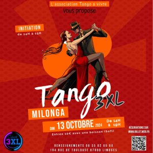 Le cabaret 3XL s'associe à l'association Tango à Vivre pour vous proposer une après-midi autour du tango argentin, une danse uniquement basée sur de l'improvisation, faite d'échanges entre le guideur et le guidé.