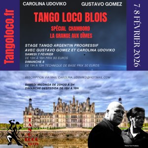 2026-02-07 13:00:00 2026-02-08 19:00:00 Europe/Paris Tango Loco Blois - Stage Gustavo Gomez et Carolina Udoviko - février2026 Reservations on : https://www.billetweb.fr/tango-loco-blois-stage-gustavo-gomez-et-carolina-udoviko-fevrier2026 -- Un stage unique dans un cadre exceptionel      ------------------   Pour plus de détails sur le contenu des cours, merci de contacter Carolina au 06 17 42 15 57     Nouveau stage évolutif individualisé à partir des fondamentaux du tango. Comment les enrichir avec fluidité et rechercher le confort dans les propositions techniques choisies en fonction des acquis de chacun.     PROGRAMME :    Samedi 7 13h00 à 18h00 : stage progressif de tango argentin 20h30 à 02h00 : Milonga (à régler sur place)   Dimanche 8 11h00 à 13H00 : enseignement des fondamentaux du tango argentin 15h00 à 19h00 : despedida (à régler sur place)          Château de Chambord, Chambord, France Carolina UDOVIKO
