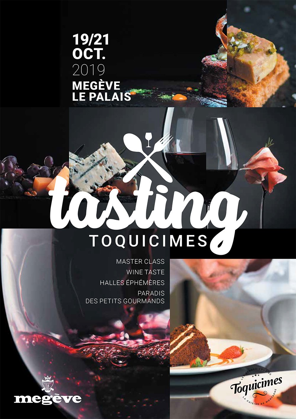 2019-10-19 09:30:00 2019-10-21 18:00:00 Europe/Paris TASTING TOQUICIMES Reservations on : https://www.billetweb.fr/tasting-toquicimes -- Le rendez-vous de la cuisine de Montagne présente son Tasting, avec un programme inter alpin autour du vin et de la gastronomie, qui réunira les filières Savoie Suisse et Italie, associant le Val d’Aoste, le Valais et Savoie Mont Blanc pour des rencontres aux sommets.Sous les présidences et parrainages d’Emmanuel Renaut chef 3* Flocons de Sel, Guillaume Gomez chef des cuisines du Palais de l’Elysée, Franck Reynaud nommé cuisinier de l’année Suisse romande par le guide « Gault & Millau » au restaurant gastronomique L’Ours, à Crans-Montana (Suisse), les Escoffiers, les Toques Blanches Lyonnaises et en présence d’importantes délégations du Gault et Millau et de la Team Bocuse D’Or, Tasting Toquicimes, du 19 au 21 octobre prochain, vous permettra de rencontrer les acteurs de la cuisine de montagne, et de tester une sélection de produits entre terroir et gastronomie et de vins de propiétaires récoltants et de grandes maisons ! Le Palais Megève, 247 Route du Palais des Sports, 74120 Megève, France EVENT'S COMMUNICATION