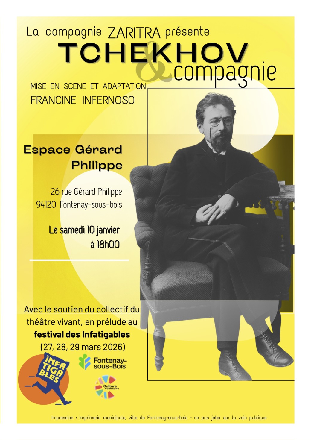 Création à partir de textes d’Anton Tchékhov, tirés de sa correspondance, de ses nouvelles et de son théâtre ( pièces en un acte)
