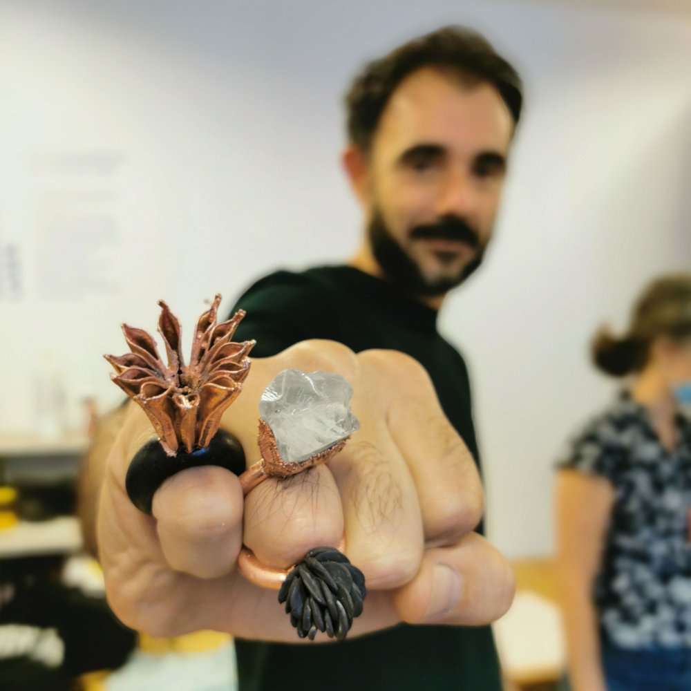 La technique de l’électroforming, consiste à déposer une couche de cuivre sur tout type d’éléments non-métalliques, pour créer un revêtement total ou partiel, nous offrant ainsi la possibilité de créer des formes tridimensionnelles, creuses et légères, impossibles à réaliser avec d’autres techniques. L’application de cette technique en bijouterie ouvre un immense champ de possibilités créatives. Pendant deux jours Gaston Rois, va vous guider pour mettre en pratique cette technique, utilisée habituellement au niveau industriel.