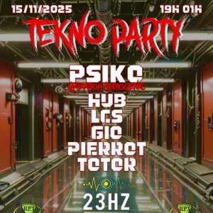 Reservations on : https://www.billetweb.fr/tekno-party-au-23hz -- Entrée gratuite, venez tôt restez tard, place limités.