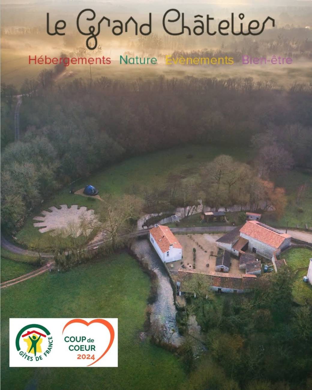 Le Grand Chatelier, situé en pleine campagne à 10mn de Melle, dans les Deux-Sèvres (79) : une belle salle dans une vieille grange, en bord de rivière, dans un cadre naturel et préservé.