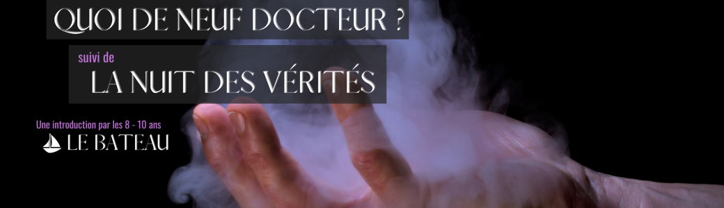 Les cours ados montent sur scène pour vous dévoiler leurs pièces de fin d'année. Le cours Ados 2 présentera "Quoi de neuf docteur ?", et les élèves du cours Ados 3 présenteront "La nuit des vérités". Le cours enfants 8-10 ans introduira le sepctacle avec leur représentation de "Le bateau".