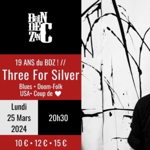 Dans un format de trio puissant, Lucas Warford mène la charge avec sa basse et sa mandoline, avec Bex Beloved au violon et aux voix, et Mark Powers à la batterie. Bien que le nouvel album du groupe ne soit pas prévu pour une sortie avant la fin 2024, ils vendront des copies physiques exclusivement lors de ces concerts de printemps européens. La seule chance pour les fans de l'entendre, pour l'instant ! Pour les amateurs de Tom Waits, Primus, Nick Cave et toute l'ancienne Americana qui se dirige vers le sombre et l'inquiétant, Three For Silver représente la nouvelle génération de ce son, lançant un défi tonitruant avec un virtuosisme musical, une écriture de chansons sombrement belle et des théâtralités carnavalesques.