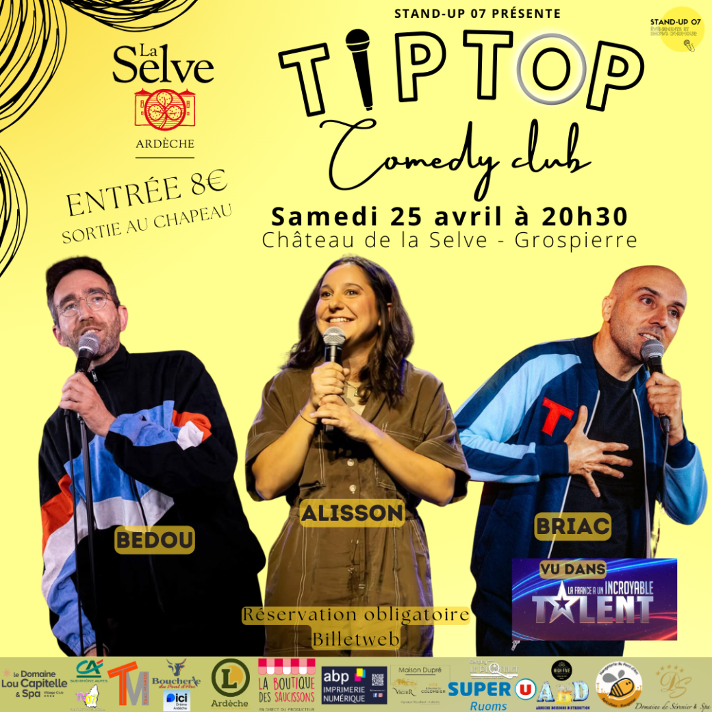 Le Tip Top Comedy Club revient pour une nouvelle soirée de rire au Chateau de la Selve à Grospierre !