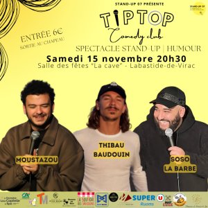 Le Tip Top Comedy Club revient pour une nouvelle soirée de rire et cette fois s'installe pour la première fois à Labsatide-de-Virac !
