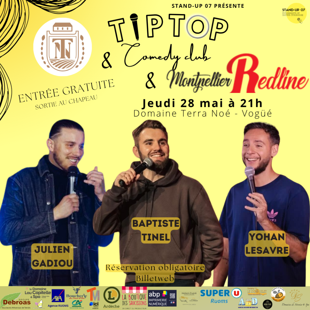 Le Tip Top Comedy Club revient pour une nouvelle soirée de rire et cette fois s'installe au domaine Terra Noé à Vogüé !