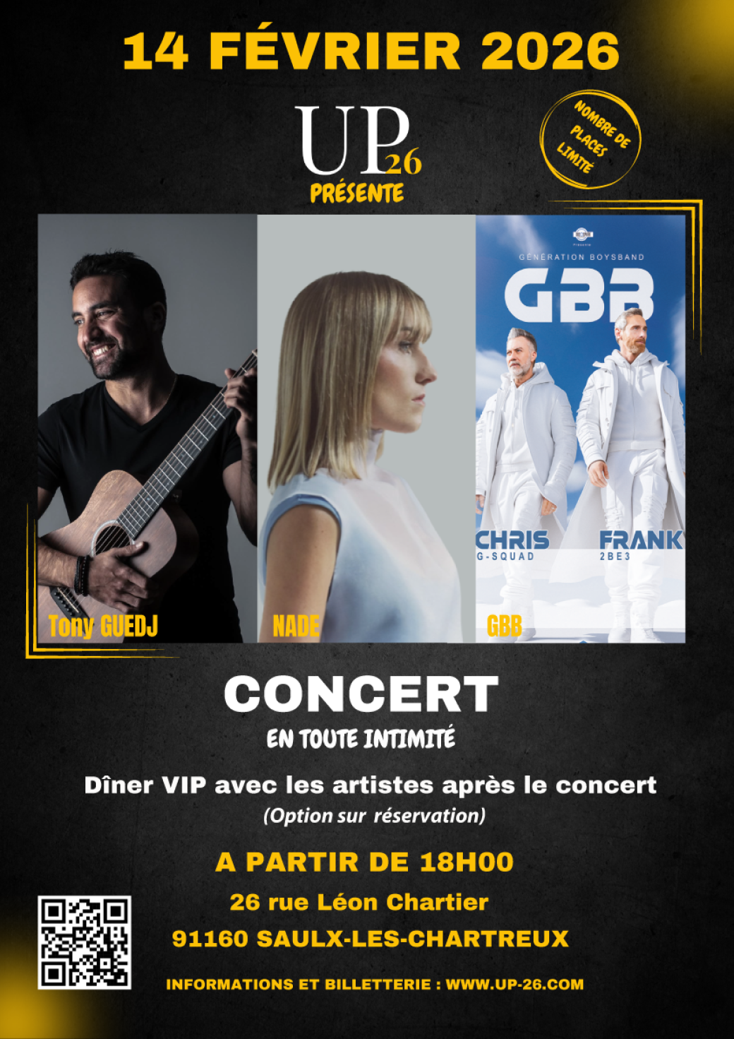 2026-02-14 18:00:002026-02-14 23:00:00Europe/ParisTony GUEDJ - NADE - GERATION BOYS BANDReservations on : https://up-26.com
