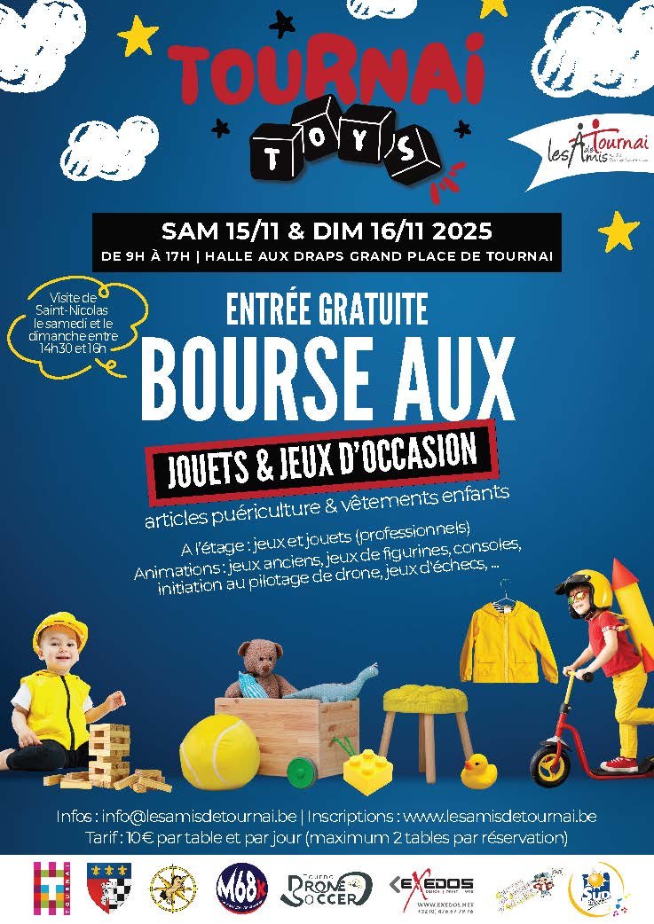 2025-11-15 09:00:00 2025-11-16 17:00:00 Europe/Brussels Tournai Toys 2025 - Samedi et Dimanche Reservations on : https://www.billetweb.fr/tournai-toys-2025-samedi-et-dimanche -- Marché aux puces des enfants...Jouets...Articles de puériculture et vente de vêtements enfants Halle aux Draps Grand Place Tournai Asbl Les Amis de Tournai