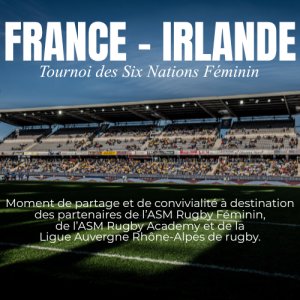 L'ASM Rugby Féminin a le plaisir de vous inviter au match du Tournoi des Six Nations Féminin opposant la France à l’Irlande, qui se déroulera le samedi 25 avril prochain au stade Marcel-Michelin.