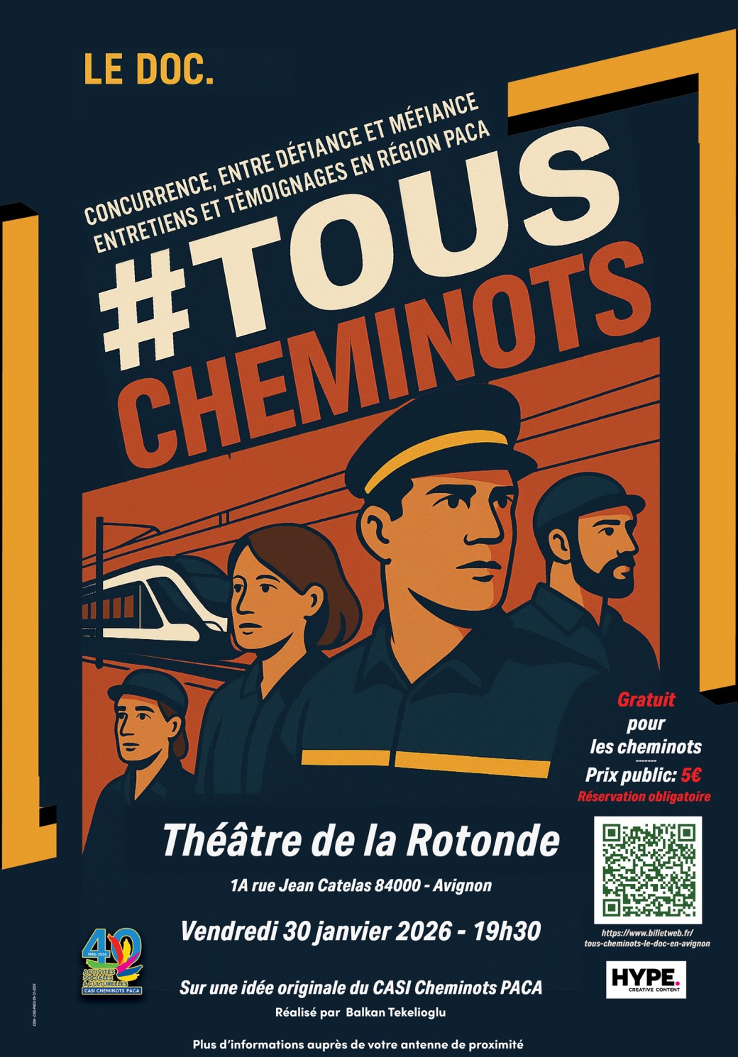 2026-01-30 19:30:002026-01-30 23:00:00Europe/Paris#Tous Cheminots le Doc en AvignonReservations on : https://www.billetweb.fr/tous-cheminots-le-doc-en-avignon
