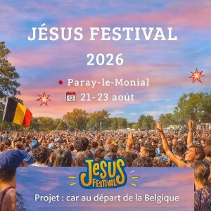 2026-08-21 08:00:002026-08-23 23:55:00Europe/BrusselsTransport en car de la Belgique vers le Jésus Festival 2026 Reservations on : https://www.billetweb.fr/transport-en-car-vers-le-jesus-festival-2026