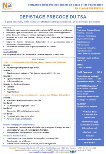 Jour 1 - Fondements scientifiques, signres précoces et dépistage