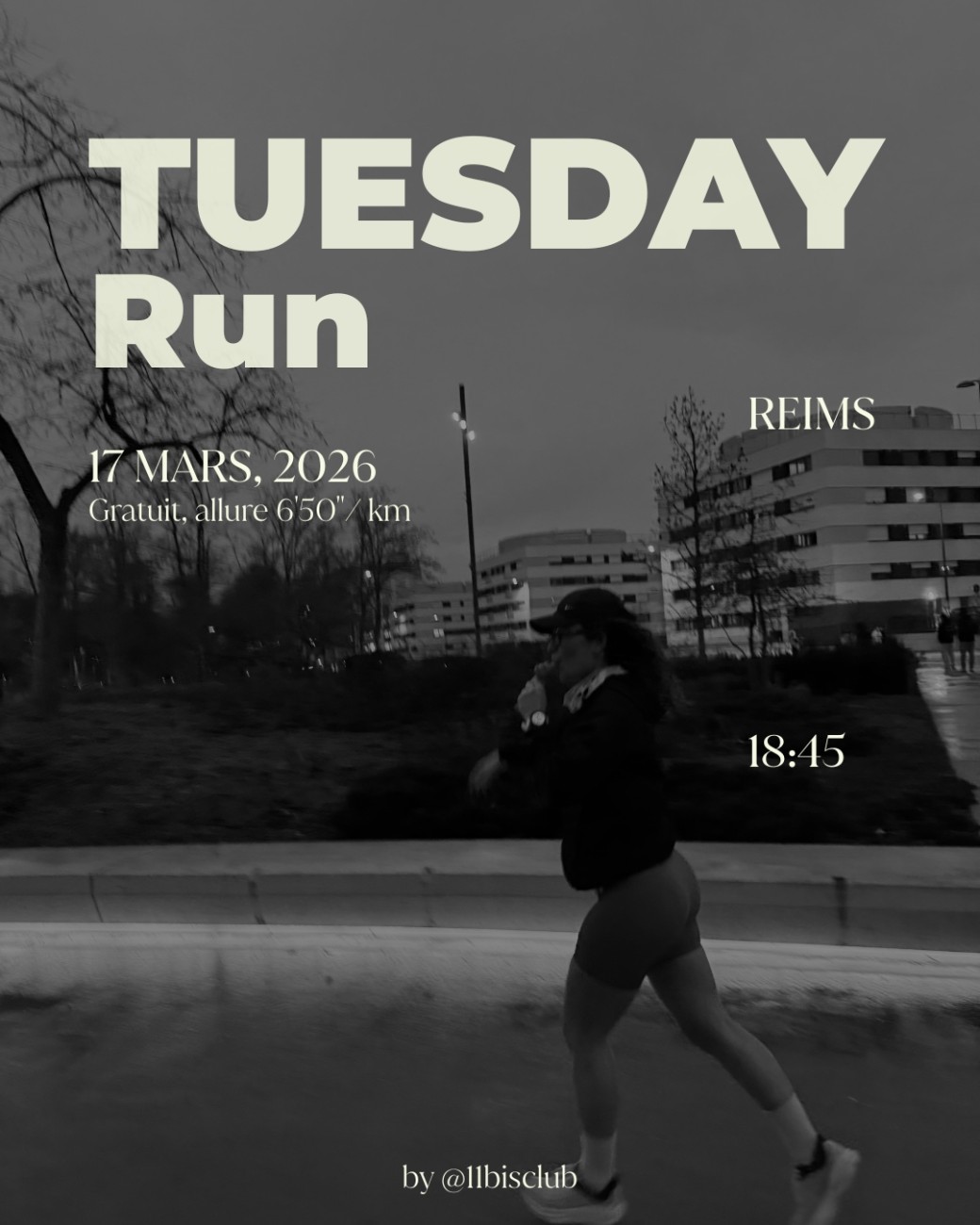 Rendez-vous à 18h45 pour un run d’environ 6km à une allure d’environ 6’50”/km, idéale pour celles et ceux qui souhaitent courir de façon confortable et régulière tout en restant dans le mouvement !