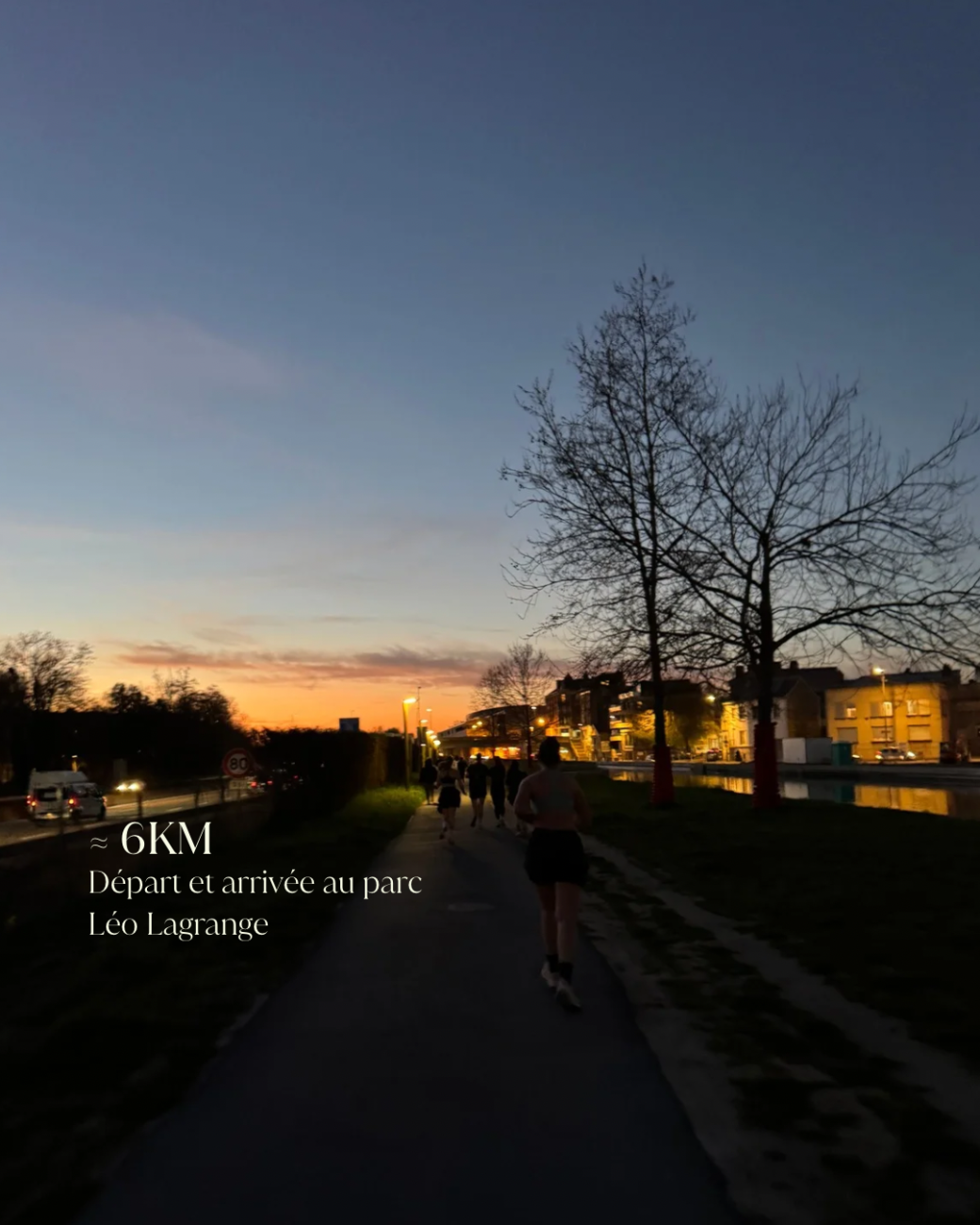 On vous attend à 18h45 pour un échauffement près du skate parc. Et départ pour une sortie d'environ 6km.