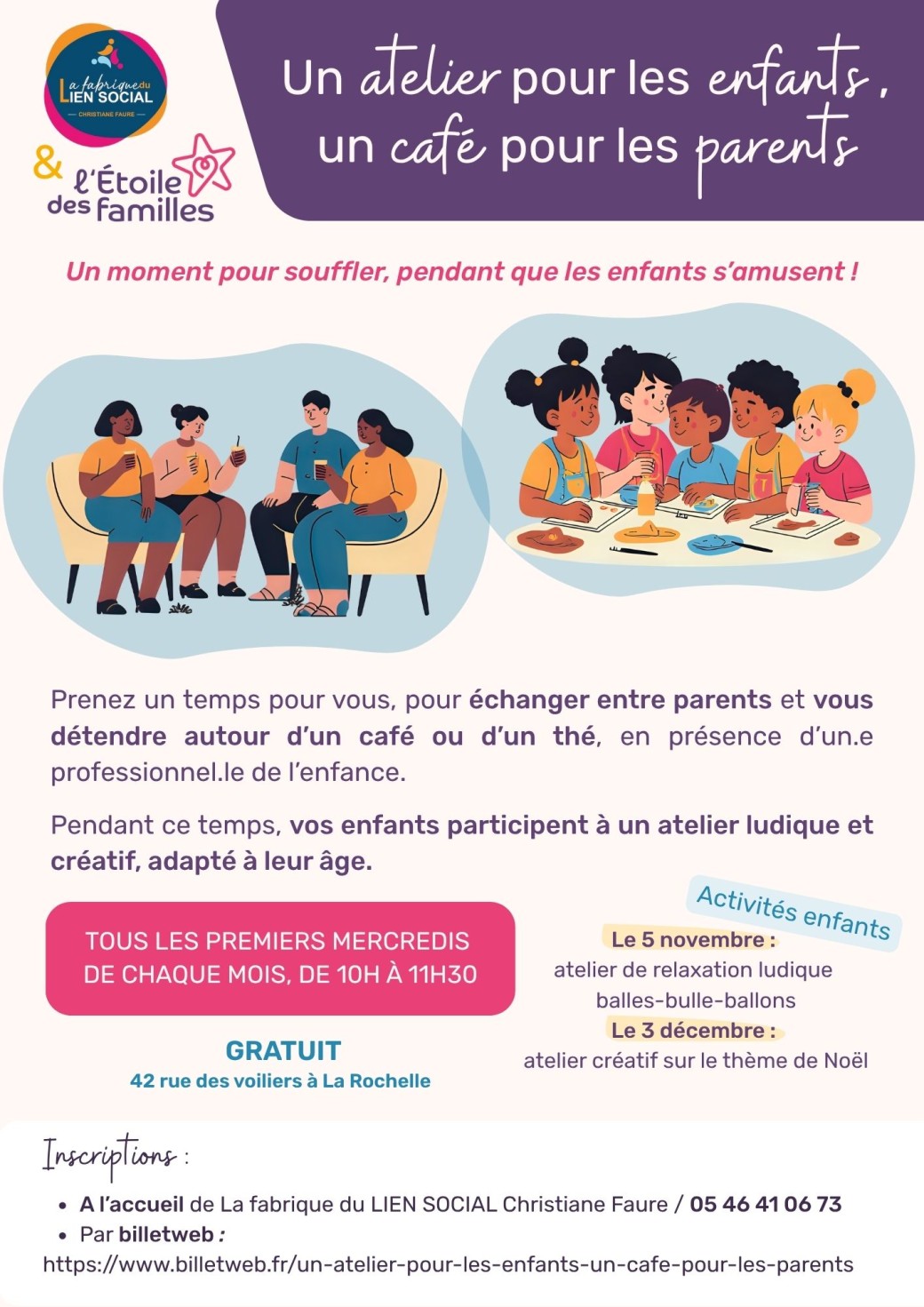 2025-11-05 10:00:002025-12-03 11:30:00Europe/ParisUn atelier pour les enfants, un café pour les parentsReservations on : https://www.billetweb.fr/un-atelier-pour-les-enfants-un-cafe-pour-les-parents