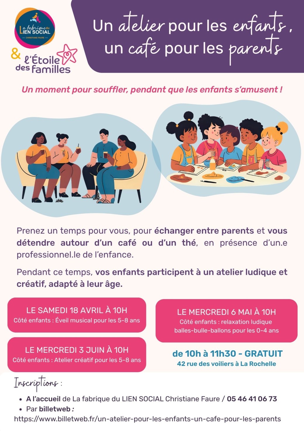 2025-11-05 10:00:002026-06-03 11:30:00Europe/ParisUn atelier pour les enfants, un café pour les parentsReservations on : https://www.billetweb.fr/un-atelier-pour-les-enfants-un-cafe-pour-les-parents
