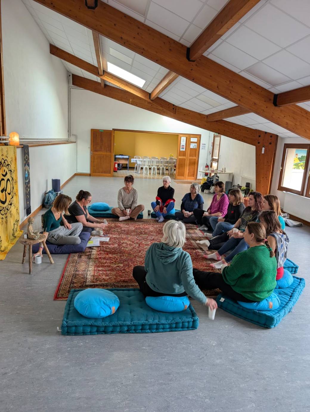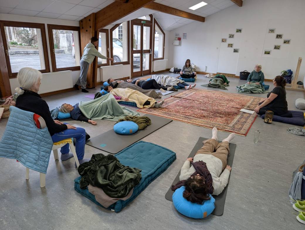 Nous sommes heureuses de vous proposer "Une Journée hors du Temps" à Nonac, dans la salle communale. Ce lieu propice à la détente est parfaitement adapté à cette journée. Une pièce lunimeuse pour les pratiques , un espace dédié au repas avec sa cuisine.