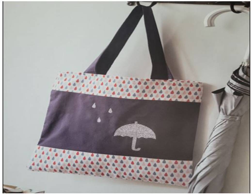 Pour ce stage, la réalisation sera 1 sac plat avec la décoration souhaité ici un parapluie mais une personnalisation est possible (coeur, étoiles...)