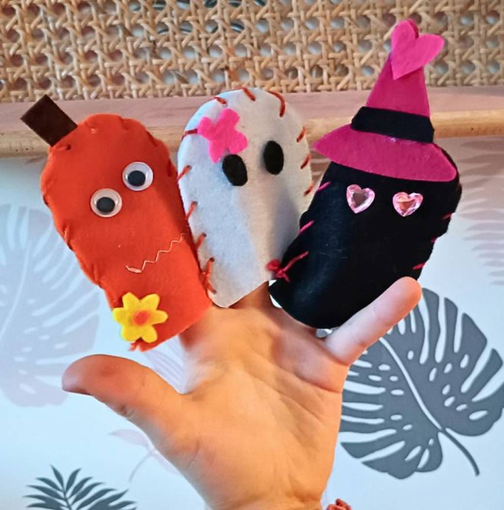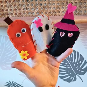 Projet final spécial Halloween : petite citrouille en feutrine, carte à coudre ou marionnette à doigt.
