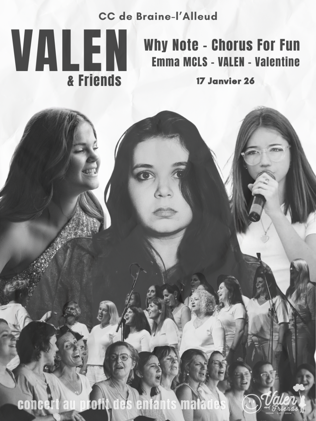 2026-01-17 19:00:00 2026-01-17 22:00:00 Europe/Brussels Valen & Friends 3ème Édition Reservations on : https://www.billetweb.fr/valen-friends-3eme-dition -- Rejoignez-nous pour une soirée exceptionnelle, le 17 janvier 2026 au Centre culturel de Braine-l’Alleud qui vibrera au rythme de la solidarité pour soutenir l’ASBL Valen & Friends, une association qui accompagne les enfants malades et porteurs de handicaps.   Au programme :   ✨ Deux chœurs pleins d’âmes et d’énergie :         • Why Note        • Chorus For Fun   ✨ Trois artistes à découvrir absolument :        • Emma MCLS        • Valen        • Valentine   Une soirée riche en voix, en émotions et en énergie, où chaque note sera une main tendue vers les enfants qui en ont besoin.   ????️ Venez vous amuser, chanter, vibrer avec nous ! Chaque place, chaque présence, chaque partage compte.   On vous attend pour faire de cette soirée un moment inoubliable et ce, pour la bonne cause ❤️ !   Bar et restauration pour tous les goûts sur placeet toujours au profit de l'asbl.   Paiement possible par : Cash, QR code et Carte bancaire. Centre culturel de Braine-l'Alleud, Rue Jules Hans 10, Braine-l'Alleud, Belgique Valentine Di Tomasso
