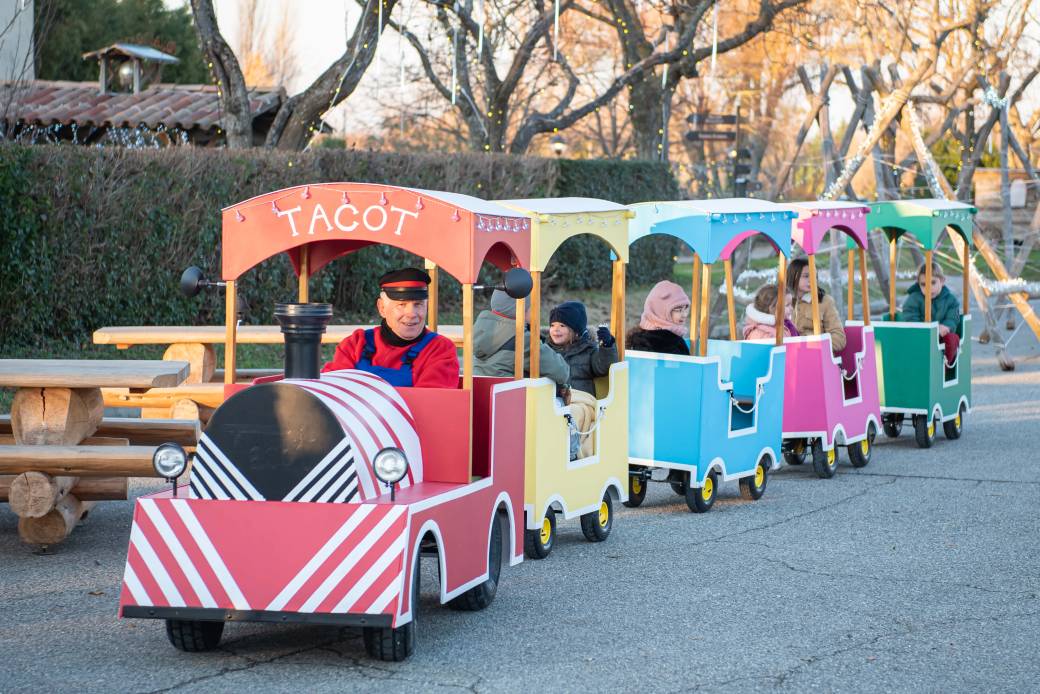 • Toujours plus d'animations avec des balades dans notre petit train "Le Tacot", la danse des lutins, des descentes en luges, la rencontre avec nos mascottes ou encore un tour dans notre manège !