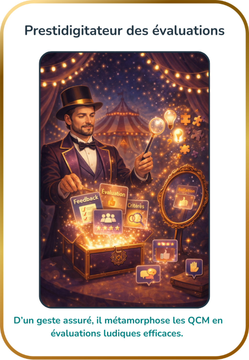 Transforme tes évaluations en moments motivants et mémorables.