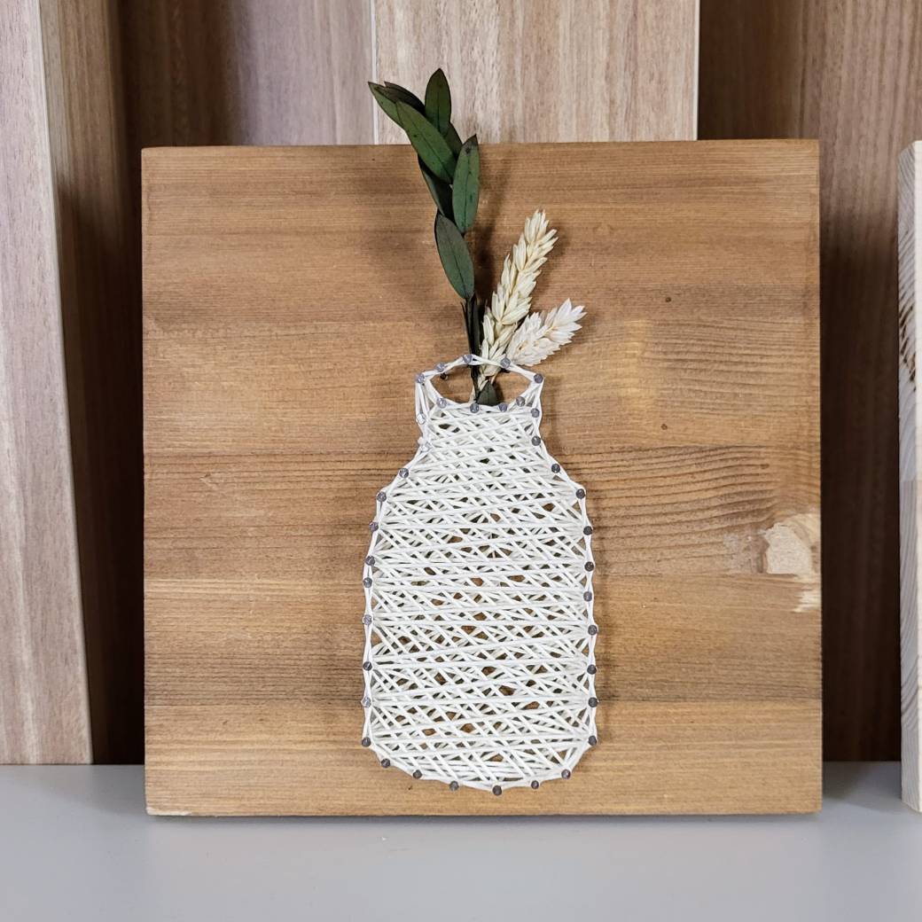 Une planche de bois, des clous et un marteau, du joli fil.... venez fabriquer votre vase en string art !