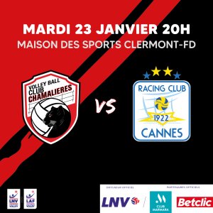 2024-01-23 20:00:002024-01-23 23:00:00Europe/ParisVBCC / RC CANNES (Coupe de France)Reservations on : https://volley-ball-chamalieres.fr/billetterie-en-ligne/