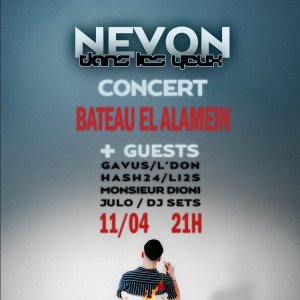 Un show démarré par un Dj Set, qui laissera place à Nevon et son univers rap/deep house, accompagné de plusieurs guests : L’don, Hash24, Gavus, Julo, Monsieur Dioni, LI2SBateau El Alamein, Port de la Gare, Paris, Francebateau el alamein