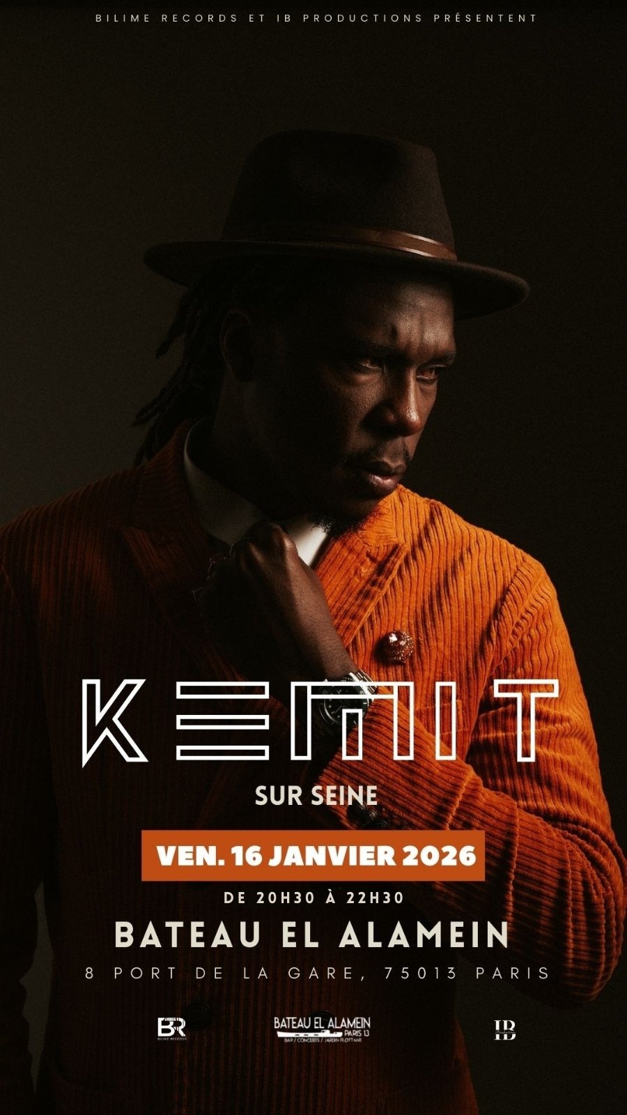 2026-01-16 20:00:00 2026-01-16 23:30:00 Europe/Paris Ven. 16/01 : KEMIT Reservations on : https://www.billetweb.fr/ven-16-01-kemit -- Plongez dans l’univers vibrant de Kemit, dont la musique fusionne afrobeat, afro-fusion, avec par moment des influences hip-hop et soul avec une intensité singulière. Porté par une identité forte et des textes poignants, Kemit crée une œuvre où la puissance des rythmes rencontre la poésie des mots.   Son dernier EP « Jade », paru le 7 novembre dernier, marque un virage sonore subtil : textures plus épurées, rythmiques plus chaudes, et une manière renouvelée d’aborder son art. Il y explore une palette d’émotions plus large et affirme son style avec finesse.   Retrouvez-le le 16 janvier prochain au Bateau El Alamein pour un live chaleureux et dynamique. Une occasion idéale de (re)découvrir un artiste en pleine ascension. Réservez votre place et laissez-vous porter.       Ouverture des portes à 20h 17€ sur place       Bateau El Alamein, Port de la Gare, Paris, France bateau el alamein