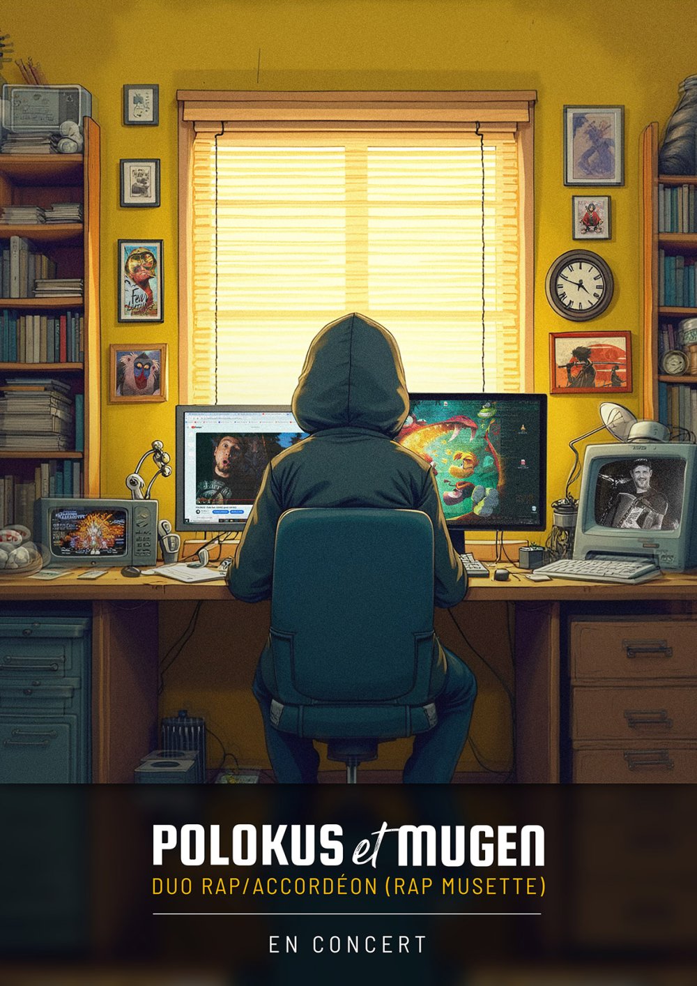 Polokus (rap, saxophone) et Mugen (accordéon, trombone, chant). partagent la scène depuis six ans sur des beats hip-hop, trap ou electro. Ils proposent une musique festive avec des textes ciselés, mêlant fictions, confidences, références geek et pop culture.