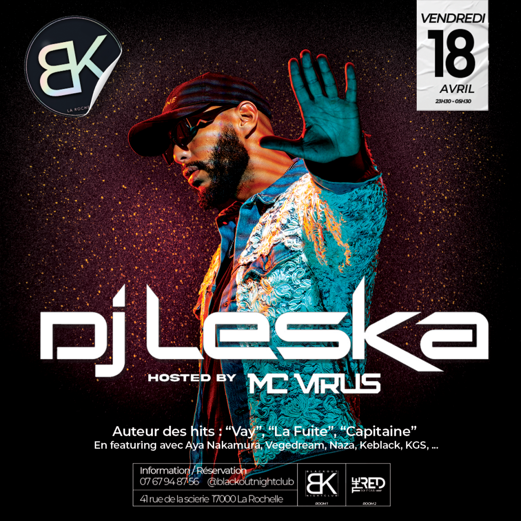 DJ Leska est de retour au Blackout accompagné par MC Virus ! ! Il fait partie des DJ/Producteurs de référence dans le milieu Urbain !