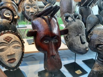 Pour nous, elle vient à la Halle ronde pour nous raconter son pays et les pays voisins, Gabon, Cameroun, Nigéria et Congo à partir d'une série de masques, expression de la tradition. Les masques présentés témoignent de la richesse des cultures africaines. Ils ont une grande valeur patrimoniale. Il s'agit d'objets uniques qui ont été façonnés par des artistes locaux, il y a bien longtemps. Ils sont destinés à des cérémonies rituelles relatives aux mariages, aux naissances, aux deuils. Certains ont un rôle social, juridique et même un rôle policier ou pacificateur... D'autres permettent d'intercéder avec les animaux et les esprits.