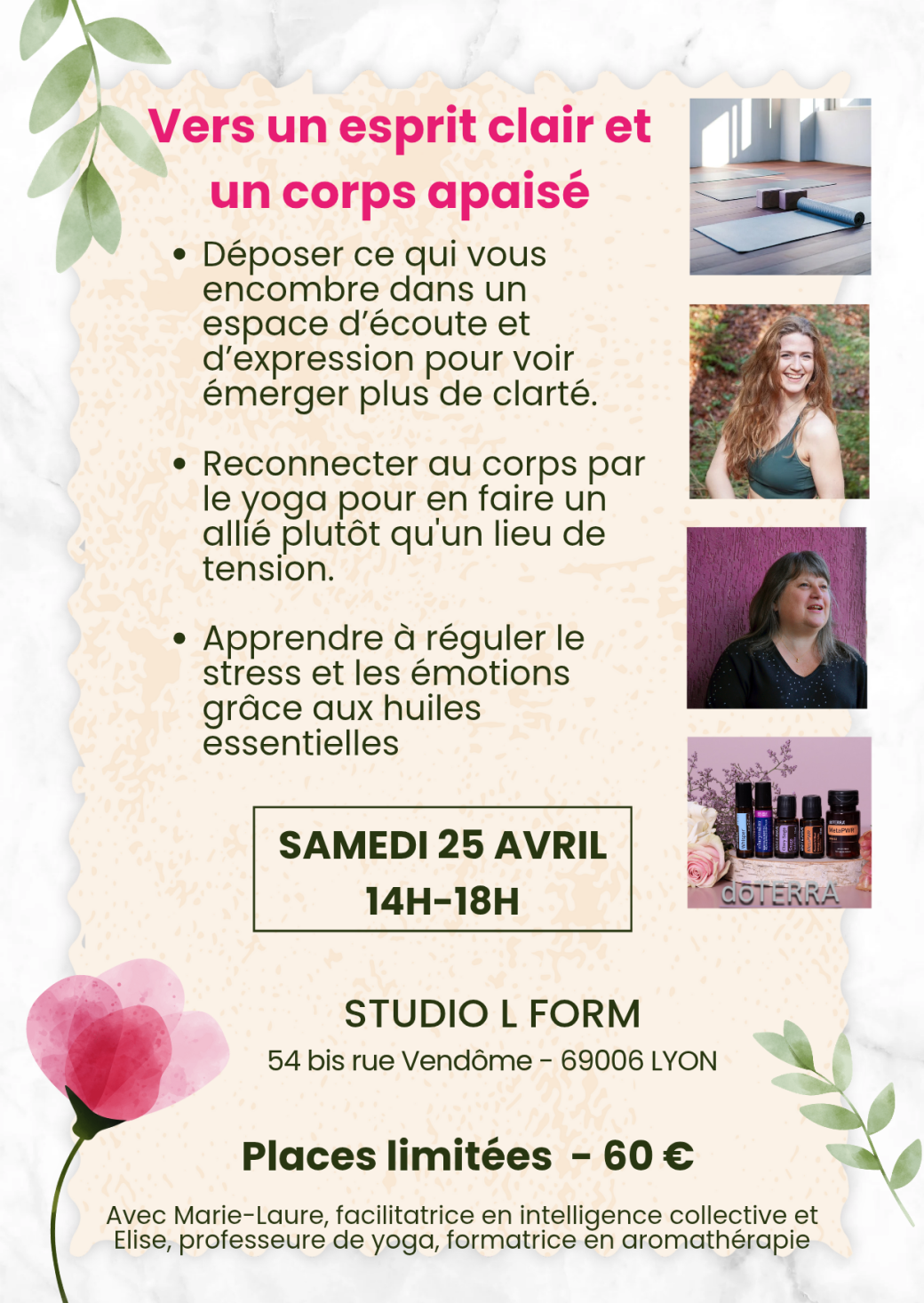 Reservations on : https://www.billetweb.fr/vers-un-esprit-clair-et-un-corps-apaise --